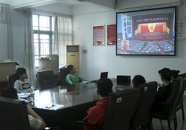 党委组织师生党员在美术楼208党员活动室集体收看大会召开盛况。党员们认真观看直播盛况并专心聆听习近平总书记代表第十八届中央委员会向大会作的报告,积极深入学习领会大会精神。