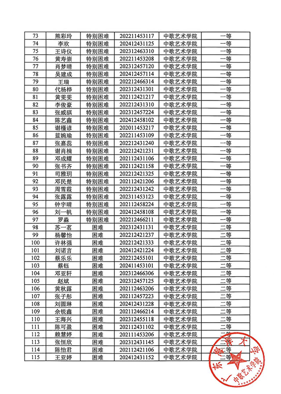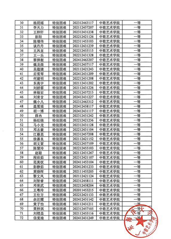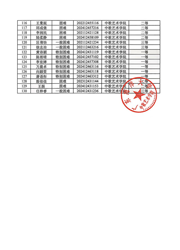 关于2024-2025学年春季学期国家助学金名单公示