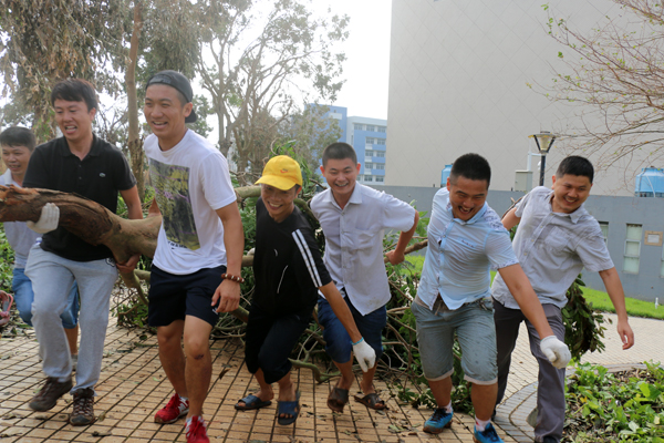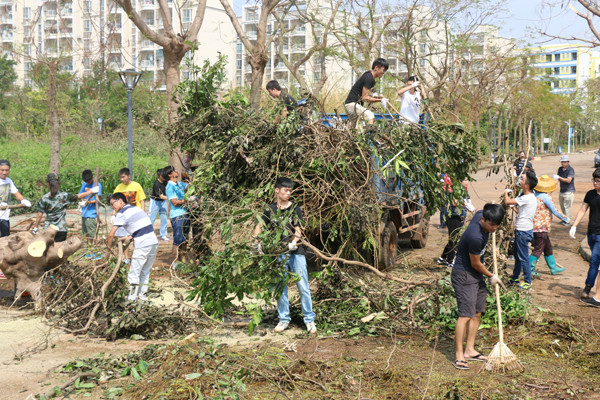 今年 10月4日,第22号强台风“彩虹”正面袭击湛江,a片漫画 也遭受台风重创,损失惨重,学院周围到处满是残枝落叶以及厚厚的淤泥。风灾之后,按照学校党委的要求,在学院党委冯红爱书记的带领下,积极迅速、有序的组织全院师生员工,开展校园清理工作。在清理的过程中,全体师生员工发扬不怕苦、不怕累、众志成城的精神,挥洒汗水重建美丽校园,“彩虹”无情,中歌有爱。清理工作结束后,学院环境焕然一新,基本恢复了原来的校容校貌,同时也为全面恢复学院正常的教学秩序提供了坚强的保障。