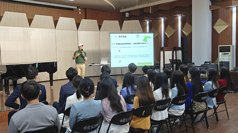 教学副院长、国家一级演员徐杰,学校教学名师姚忠呈,校级授课比赛二等奖获得者高超主讲,他们分别讲授了《声乐》、《普通话语音与播音发声》、《国际标准舞》三门课程。现场教学采用新颖的教学理念,巧妙的课堂构思,灵活融入思政元素,精彩展示了艺术课堂不同艺术作品和艺术表现所蕴涵的情感和思想。