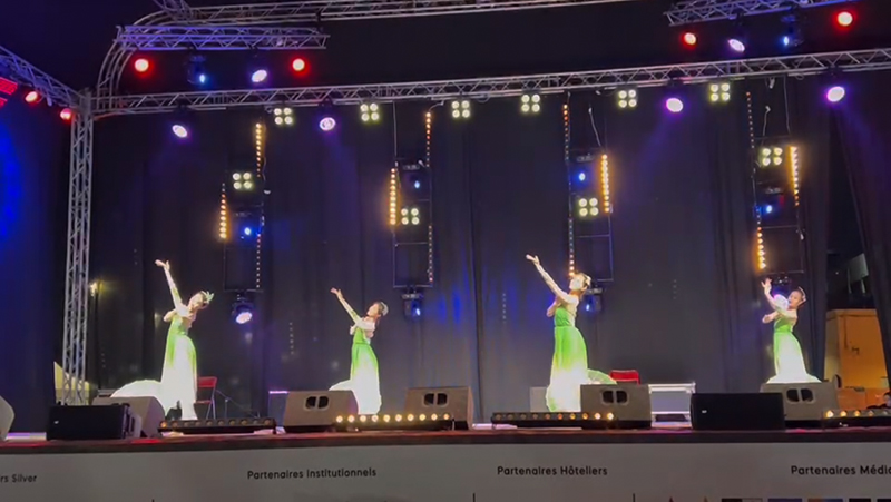 我校学生在杰马夫纳广场首场演出中演绎《茉莉花开》作品