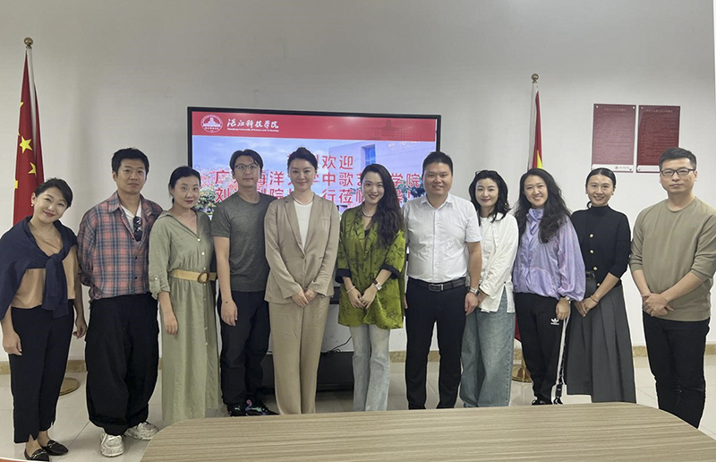 副院长、艺术总监刘迪带领系党支部书记潘垠松及专任教师严嘉、王鹏、沈玥赴湛江科技学院音乐与舞蹈学院调研并座谈。我校2009届校友、湛江科技学院音乐舞蹈学院院长樊蒙蒙、党委书记林荣师接待了一行并组织各系专业负责人参加座谈会。双方就学校舞蹈编导专业学科建设、人才培养、科学研究、办学特色等问题进行了广泛交流和深入探讨。
