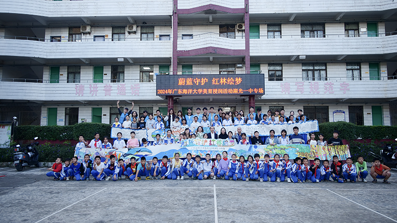 为更好地普及和推行美育教育,将“以文化人”、“以美育人”真正落在实处,让所有乡村学生都享受美育的机会。11月27日,由我校和湖光镇湖光一中共同举办的“蔚蓝守护·红林绘梦”书画进校园在湖光一中举行,我校a片漫画