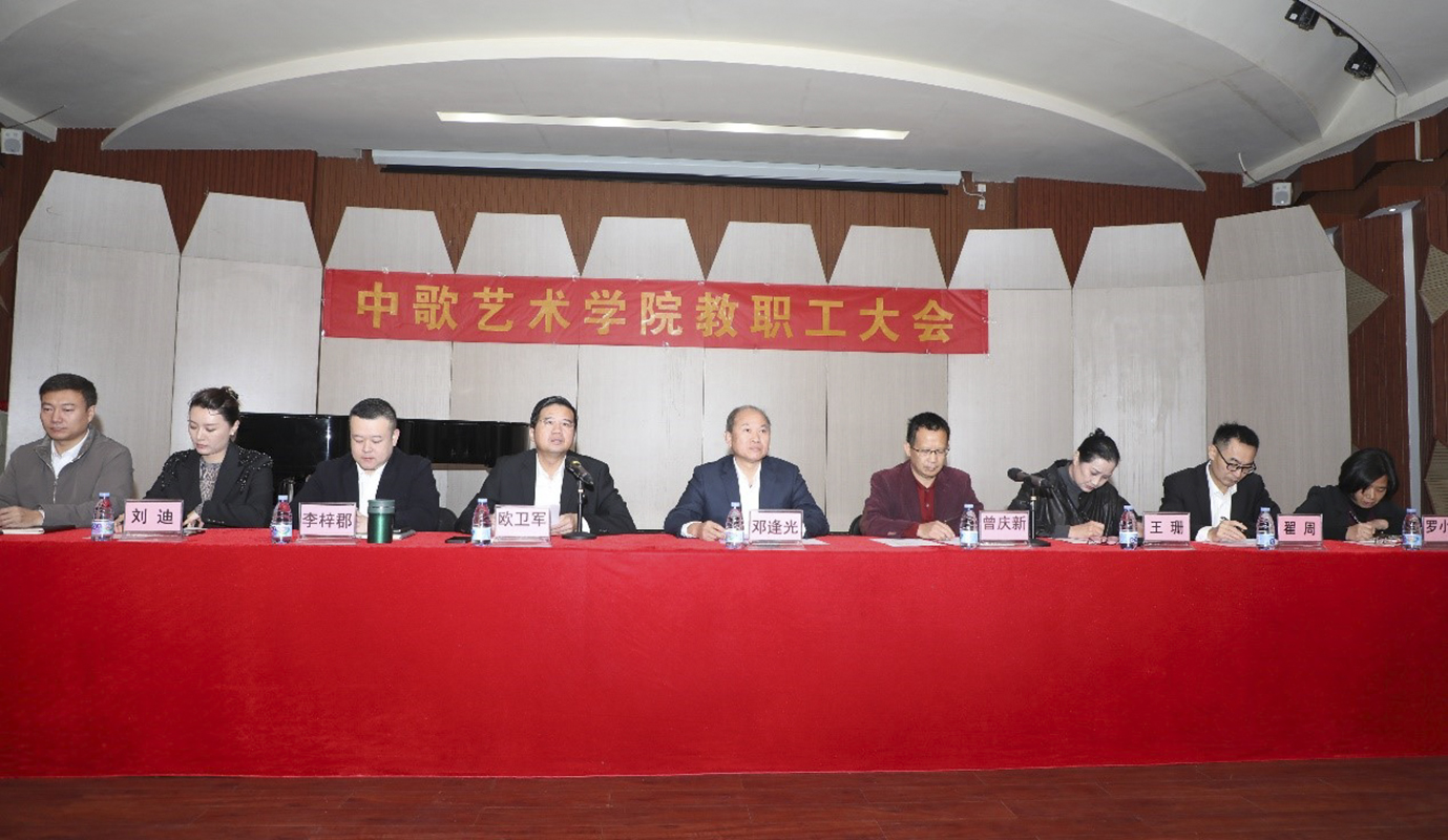 在艺海楼B-206音乐厅召开全院教职工大会,宣布学院主要领导调整的决定。学校党委常委、副校长邓逢光,组织部部长曾庆新出席会议,学院全体教职工参加会议,学院党委书记欧卫军主持会议。