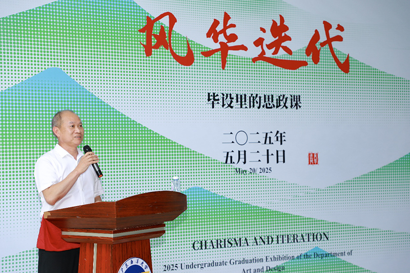 建校90周年之际,"风华"二字既是对学校办学历史的致敬,也是对同学们艺术才华的礼赞;"迭代"则彰显了新时代艺术表达方式的创新突破,他寄语毕业生要扎根生活、真诚创作、永不止步,用作品记录时代、服务社会,随后他宣布展览正式开幕。