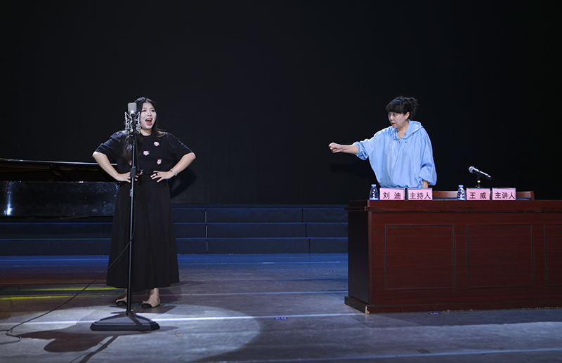 王威教授以《声音赋予语言的智慧碰撞》为题开讲,凭借她深厚学术造诣与丰富实践,结合王迎新老师的钢琴艺术指导,拓宽了师生的学术视野,激发大家对声乐艺术的深度思考。